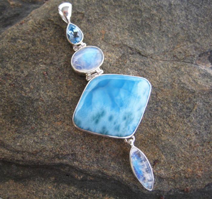 - Mit Labradorit: Sie sind Cousins aus der Feldspat-Familie. Der dunklere, mystische Schimmer des Labradorits bildet einen wunderbaren Kontrast zum hellen Leuchten des Mondsteins.