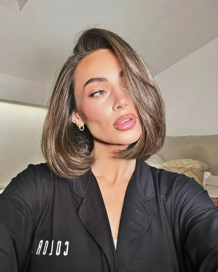 Der wellige Bob ist dafür bekannt, dass er die Illusion von Fülle erzeugt. Wenn Sie zusätzlich die Textur Ihres Haares verbessern, liegen die Strähnen leichter übereinander und verleihen ihm scheinbar mehr Dichte. Durch das Einbringen kleiner Strähnchen können Sie mehr Dimension und Tiefe schaffen.