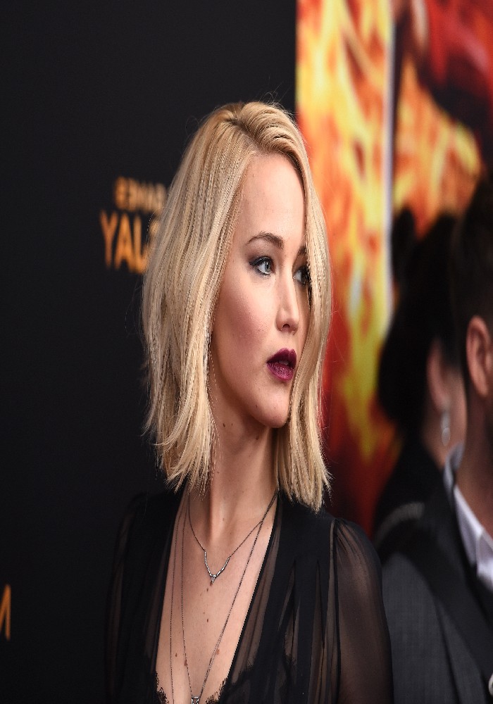 Frisuren halblang feines haar bob haarschnitt mit seitenscheitel blonde haare roter lippenstift schwarzer eyeliner