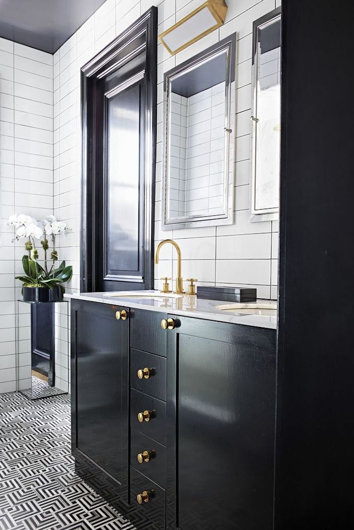 Bad fliesen ideen bilder wand weiße fliesen boden schwarz weiß waschbecken keramik schwarzer schrank