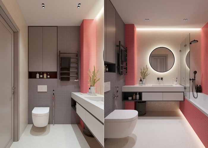 Badezimmer einrichtung bad fliesen ideen bilder beige koralle keramik waschbecken