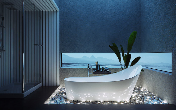 Moderne bäder keramik badewanne weiß licht effekte glas badewanne