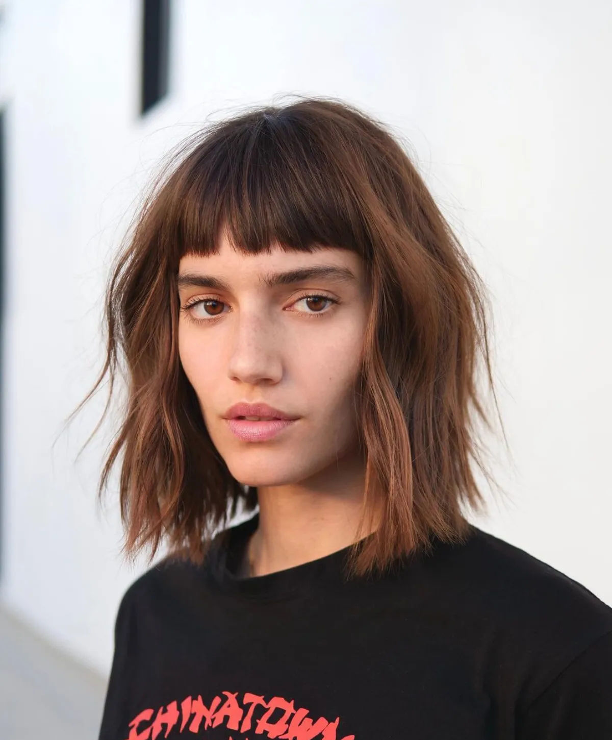 Vergessen Sie den messerscharfen, grafischen Bob. Der „Italian Bob“ ist seine lässige, voluminöse Schwester. Er endet knapp unter dem Kinn oder auf den Schultern, hat aber im Gegensatz zum französischen Bob mehr Fülle und eine subtil gerundete Form. Die Spitzen werden oft leicht nach innen geföhnt, was einen Hauch von 60er-Jahre-Glamour à la Monica Vitti versprüht. Er wirkt teuer, unaufgeregt und funktioniert am besten, wenn man ihn einfach an der Luft trocknen lässt und zum Schluss mit den Fingern in Form zupft.