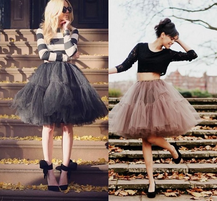 Tutu rock damen richtig stylen zwei bezaubernde looks mit ballettrock grau und beige spitze schleifen an den schuhen