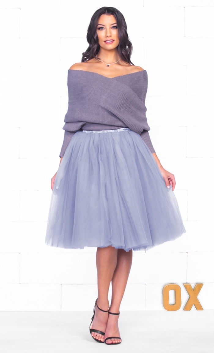Tutu rock einziehen unglaublich schöner look elegantes outfit in lila dezente halskette mit anhänder weihnachtslook