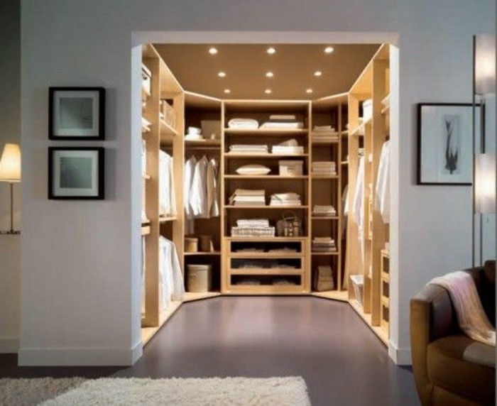 Ankleidezimmer begehbar beleuchtung regale