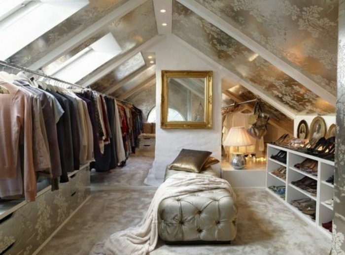 Begehbare kleiderschraenke dachzimmer golden gestaltet garderobenstaender