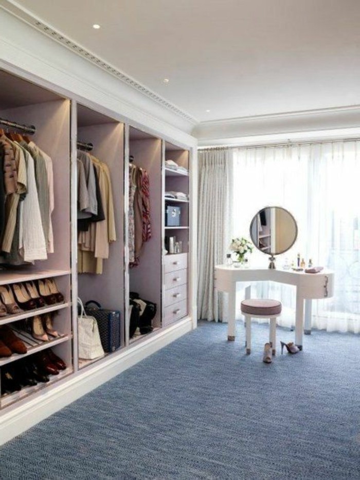 Begehbarer kleiderschrank toilettentisch im ankleidezimmer rosa farbe