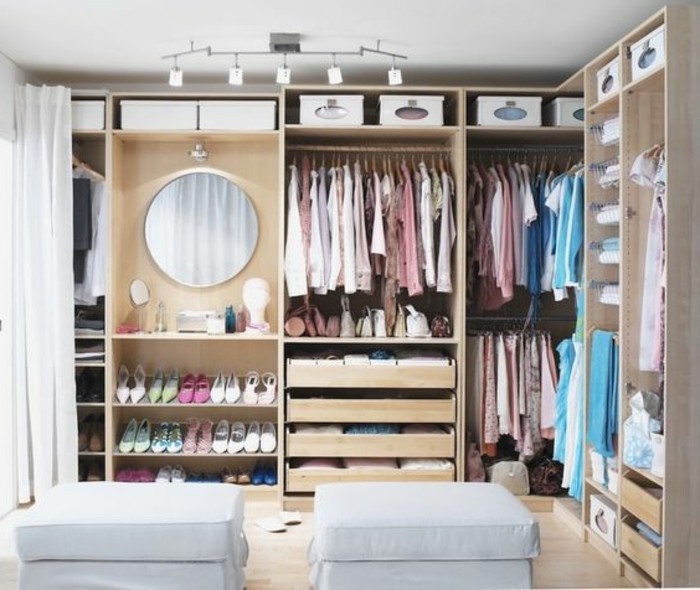Offene kleiderschraenke runder spiegel bunte kleider