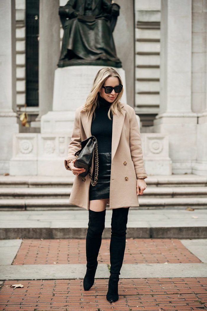 schwarze sneakers schwarze jeans camelfarbener mantel schwarze mini handtasche dresscode sportlich elegante outfits damen 1