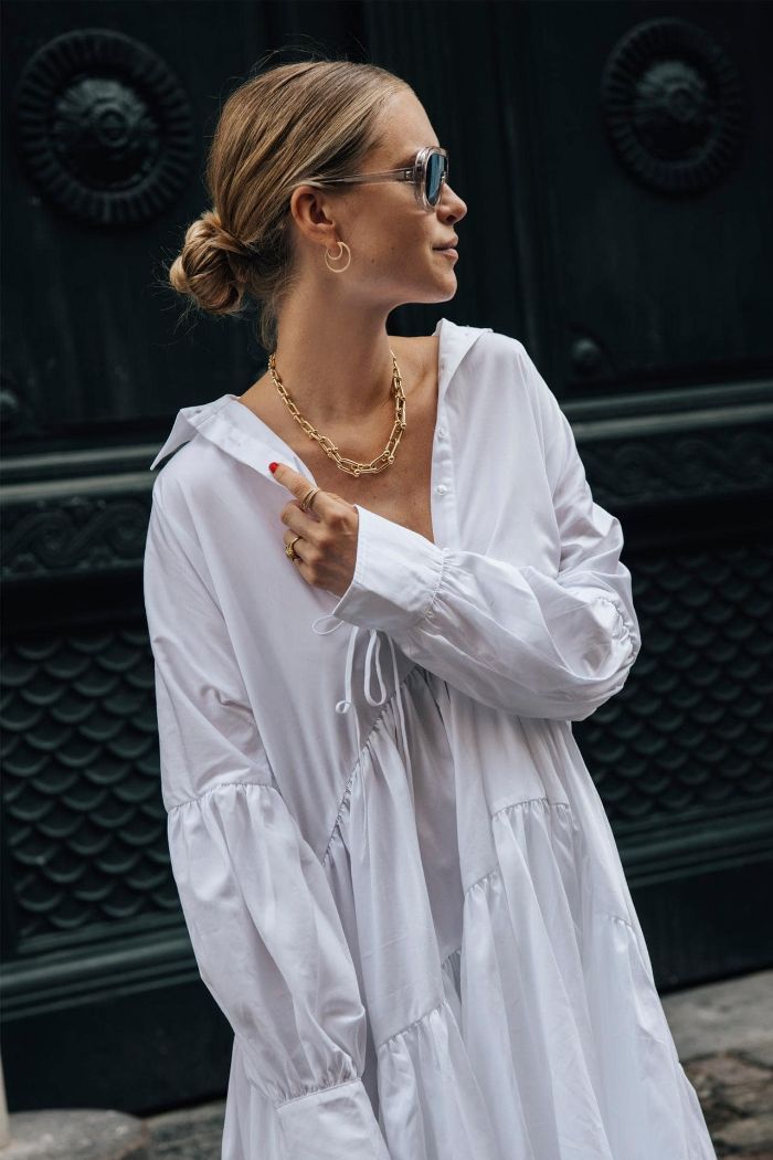 Dänische mode für frauen simples design in weiß ein kleid zum inspirieren gebundene haare simple outfits stilvoll