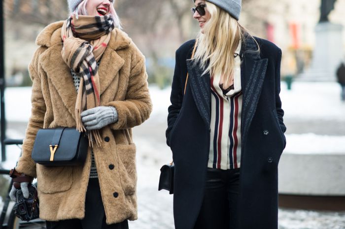 Kinderbekleidung marken zwei frauen ideen für winter outfits mode ideen flauschige mäntel