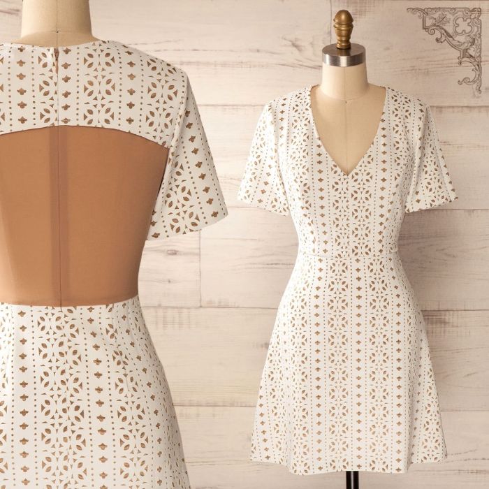 Mode versand parte ein elegantes kleid in weiß mit spitzenmotiven und nacktem rücken einfacher schnitt