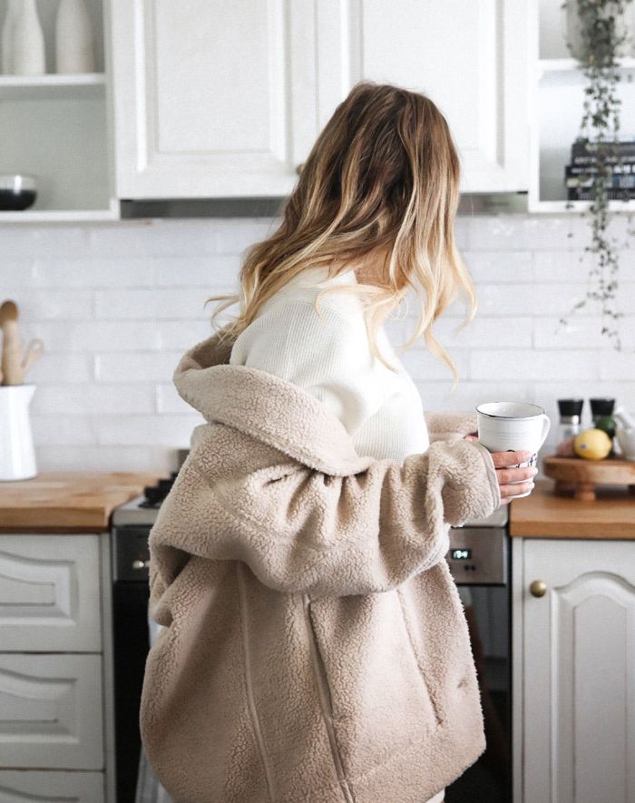 Schwedischer onlineshop mode outfit ideen weiß und beige eine frau zu hause bequeme kleidung
