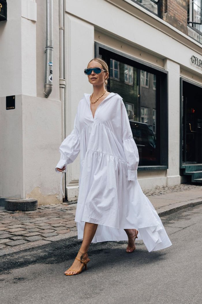 Dänische mode für frauen das weiße alltägliche hemdkleid ist ein klassiker und das bequemste was eine frau tragen kann