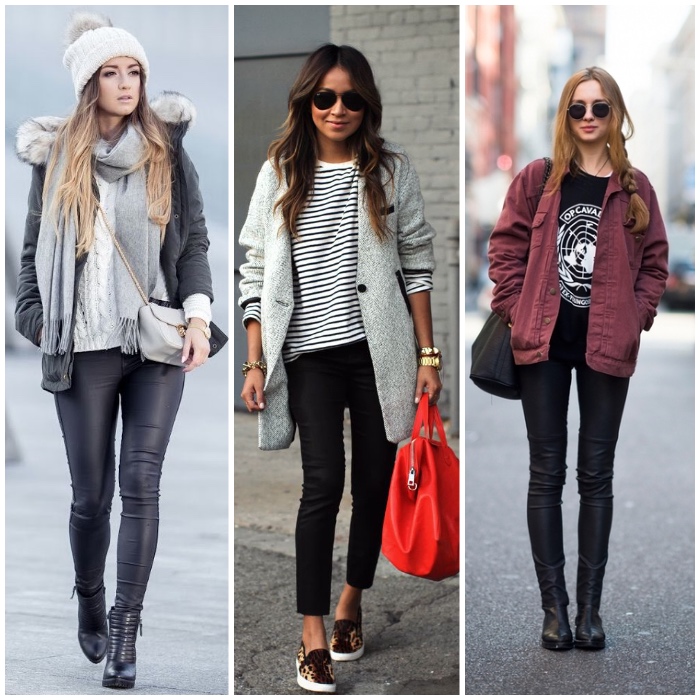 Schuhtrends herbst winter 2017 18 schuhe mit tiger muster schwarze stiefel leggings große rote tasche asscessoires frauenmode