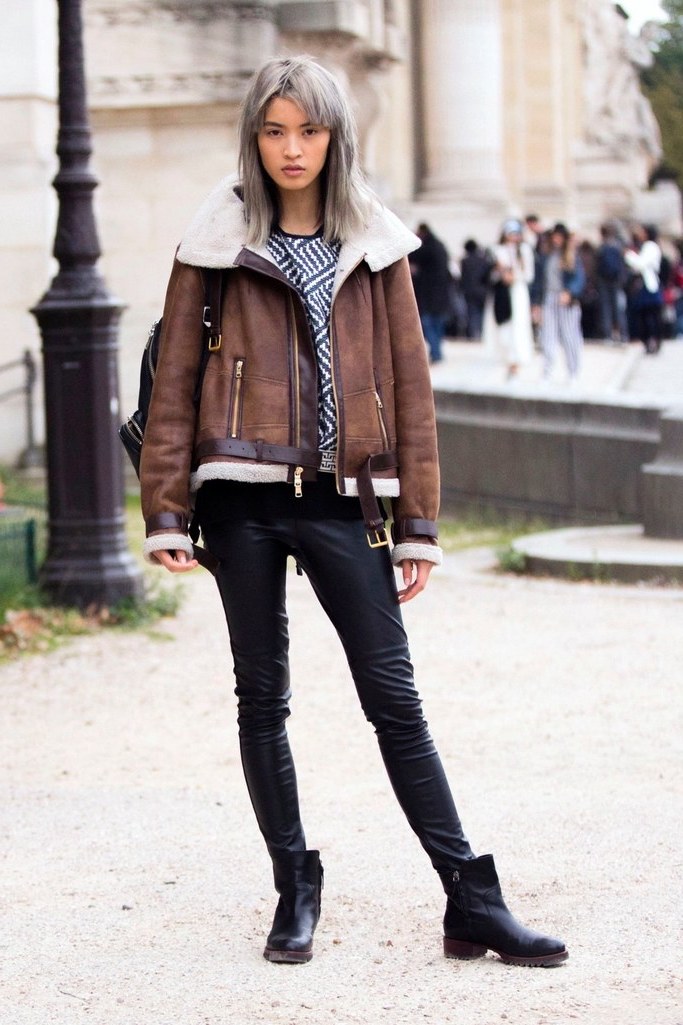 Slideshow winter outfits 26 winter outfit idea leather pants shearling jacket main