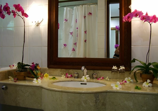 Badezimmer Dekoration -einmalige Wandgestaltung und zärtliche Blumen