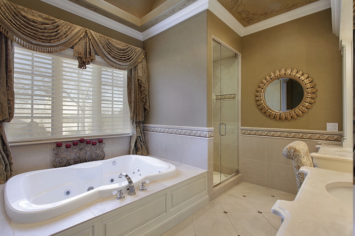 Bad ideen antike gardinen antike deko whirlpool badevanne zimmerdecke ornamente polsterstuhl schminktisch antiker rahmen spiegel