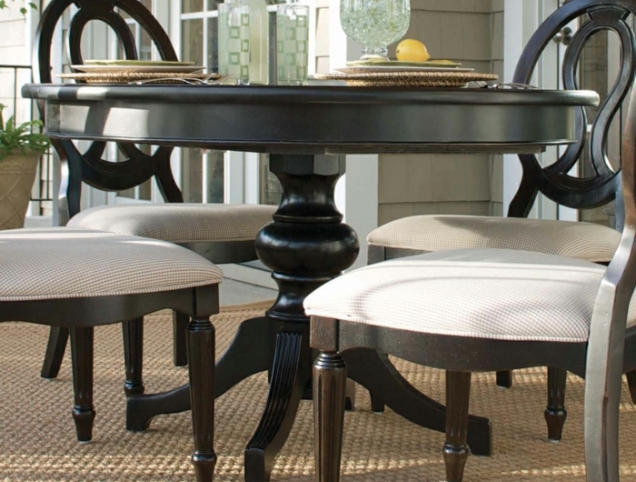 Aristokratische Möbel schwarzer Esstisch rund Stühle elegantes Design Vase Zitrone