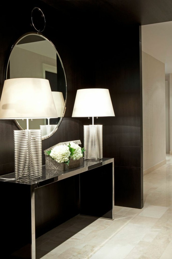 Diele gestalten zwei lampen symmetrisch an dem beiden seiten des spiegels resized