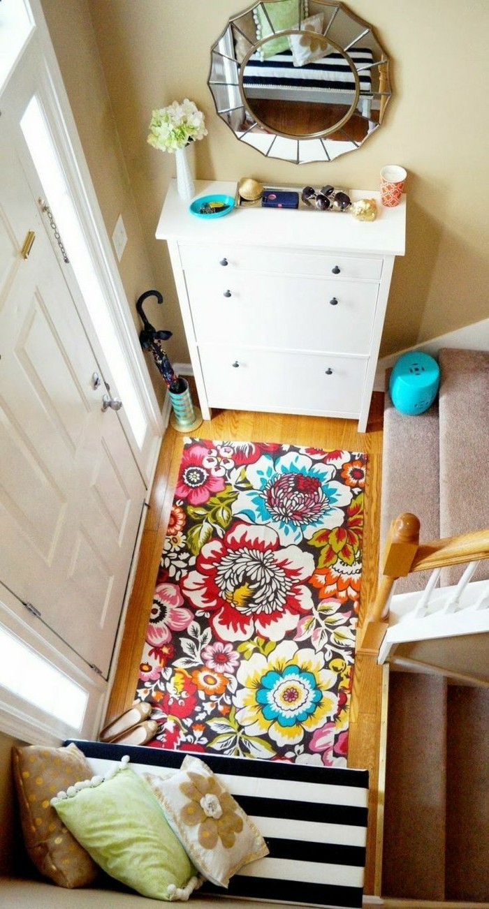 Flur ideen bunter teppich mit blumen muster resized