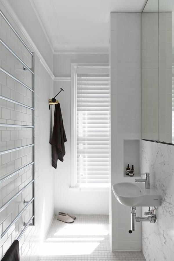 super modernes Badezimmer mit Heizkörper und Handtuchhalter