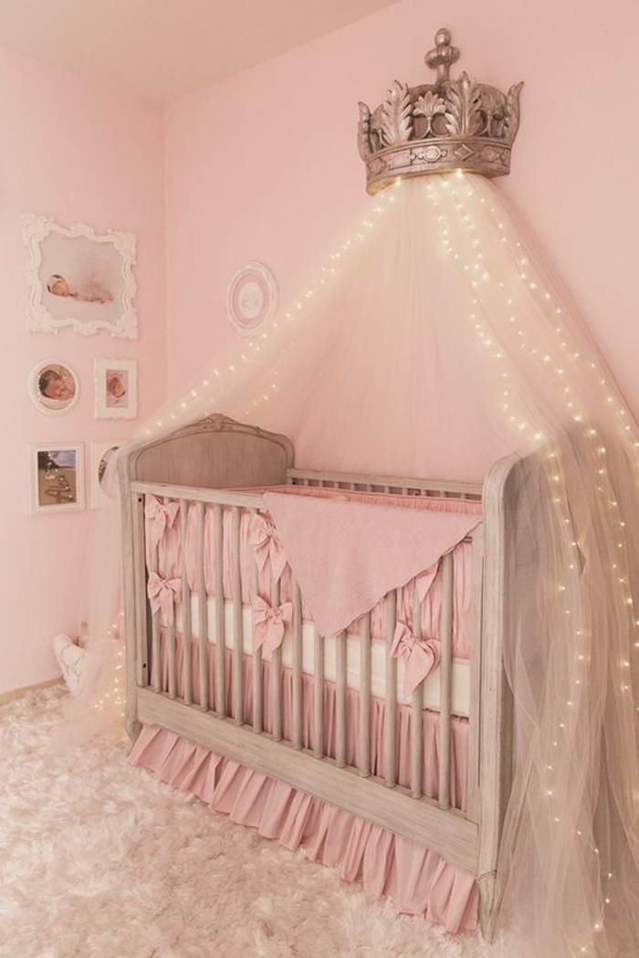 Babybett mit himmel himmelstange krone rosa babyzimmer mädchen kinderzimmer