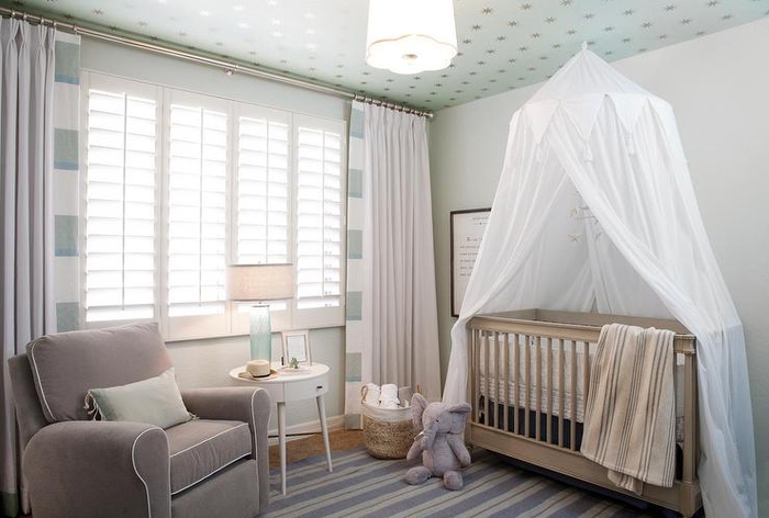 Babyzimmer in pastelltönen holzbett mit himmel weiß plüschtier elefant kinderzimmer einrichten ideen