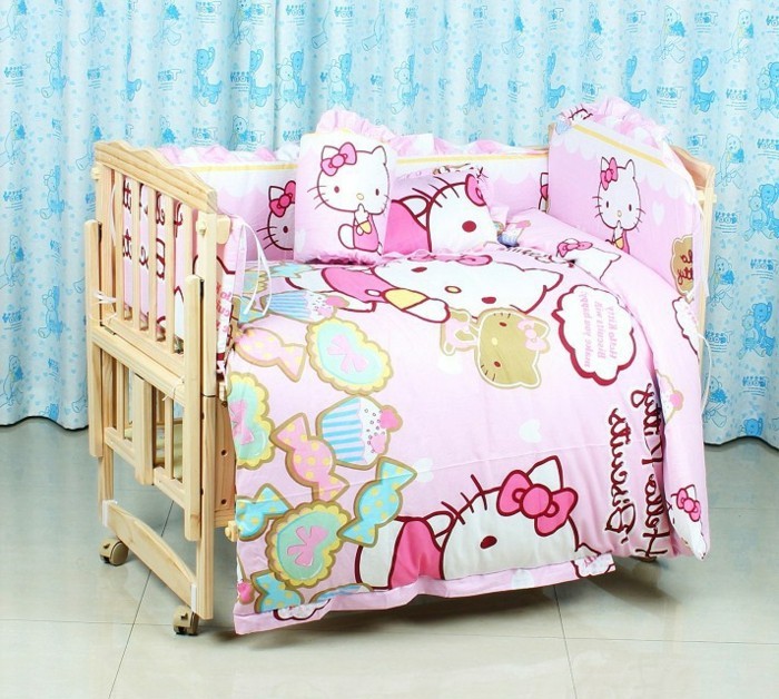 Kreatives modell babybett mit schönen rosigen bettwäschen