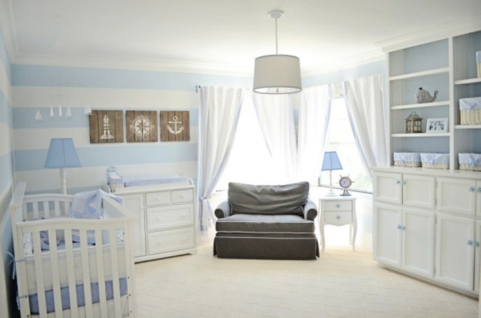 Babyzimmer einrichten gestreifte wände graue couch babyzimmer jungen kinderzimmer