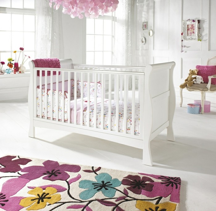 Mädchen kinderzimmer babys teppich blumen weißer boden rosa kronleuchter