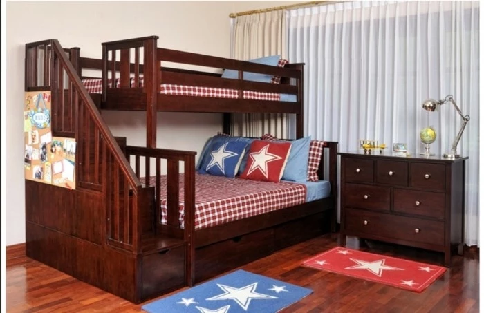 Die Treppe: Benötigt mehr Grundfläche, bietet aber unschlagbare Sicherheit beim Auf- und Abstieg. Das absolute Highlight: Modelle wie die von „Paidi“ oder „Flexa“ integrieren oft Schubladen in die Stufen – genialer Stauraum, der sonst verloren wäre.