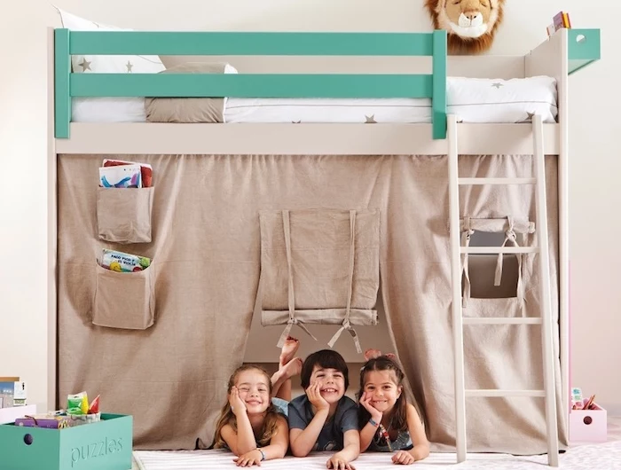 - Ein Stoffhimmel, der unter dem Bett befestigt wird und eine geheime Höhle schafft.