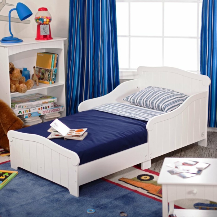 Jungen kinderzimmer teppich mit autos zimmerdesign in blau bücherregale spielzeuge