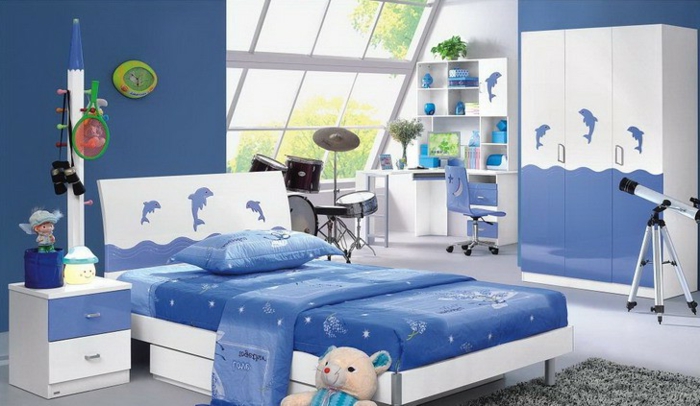 Jungen kinderzimmer weiß blau seemotive wasser wellen delfine dekoration wanddeko im zimmer