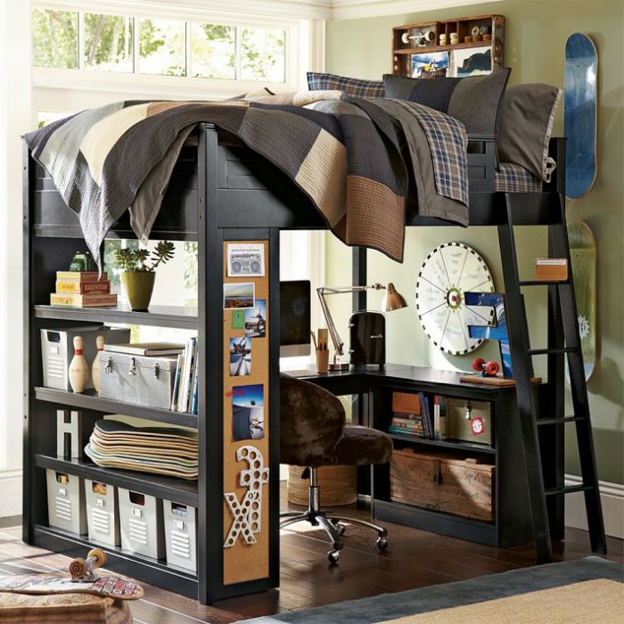Jungenzimmer gestalten kreatives design schreibtisch unter dem bett fröhliches kind hohes bett