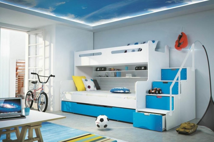 Kinderzimmer einrichten smart design für kleine räume blau weiß rad schreibtisch computer bett