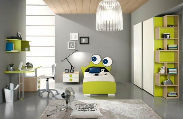 Kinderzimmer gestalten bett in grün wie ein frosch gestaltet große augen tier zimmer mit akzent auf grüne farbe