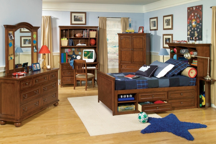 Kinderzimmer gestalten dezent und stilvoll einrichten möbel aus massivholz stern teppich kosmos bild