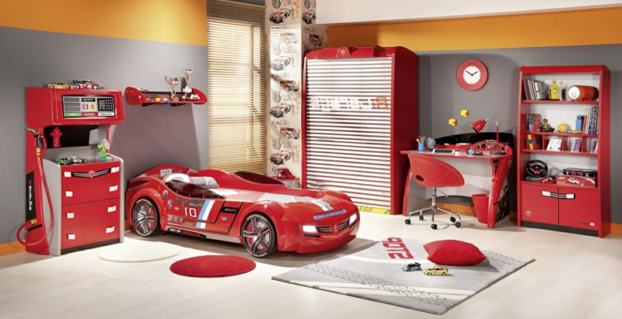 Kinderzimmer ideen jungs klassische kombination rot und grau rotes auto bett