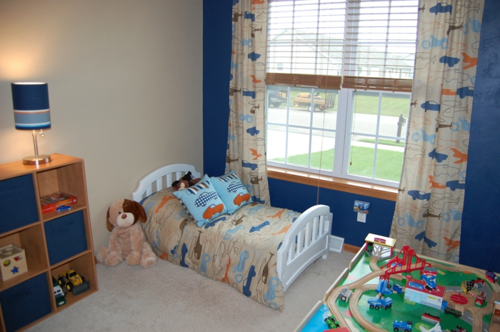 Kinderzimmer ideen jungs kleines zimmer smart einrichten bett decke mit bären spielecke zug spielzeug