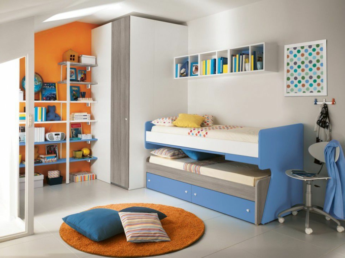 Kinderzimmer ideen kleines zimmer einrichten ideen für kinder blaue farbe mit orange kombinieren