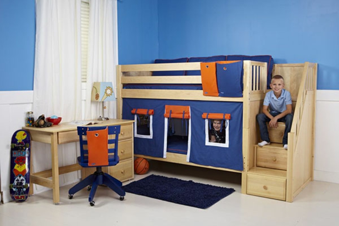 Kinderzimmer junge das bett als haus eigener raum im zimmer schreibtisch blau für junge