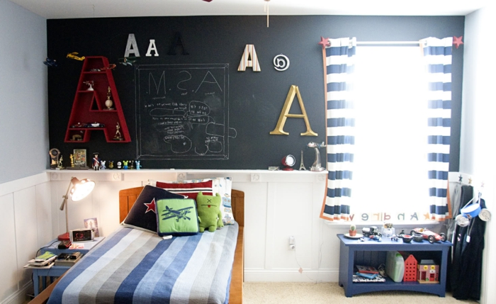 Kinderzimmer junge schwarze tafel über dem bett dem kind freien raum geben fantasien verschriftlichen licht