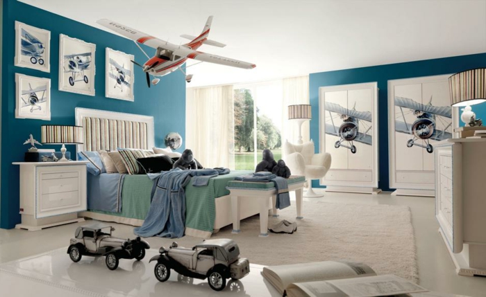 Kinderzimmer jungs fliegen mögen flugzeuge bett schlafzimmer ideen gestaltung junge blau