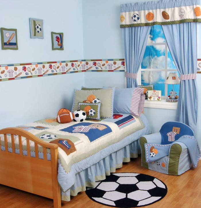 Jungen kinderzimmer in blauer farbe gestalten fußball motive im zimmer von junge