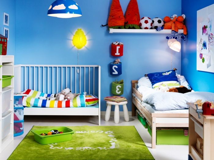 Kinderzimmer einrichtung buntes design ideen für jungen grün und blau herrschen 2017 vor