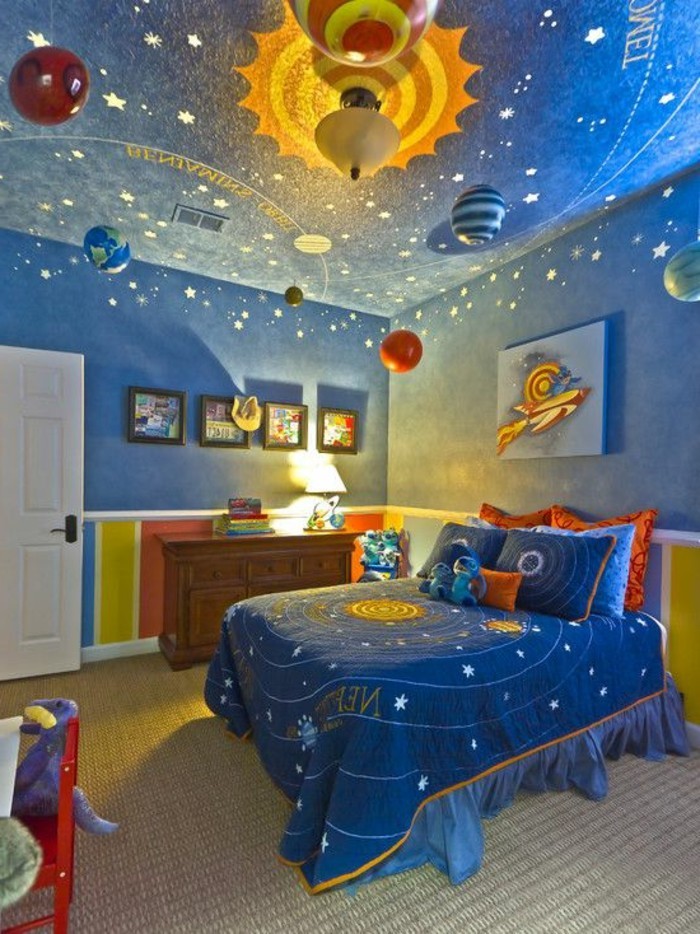 Große wandbilder für kinderzimmer in blauer farbe mit sonnesystem