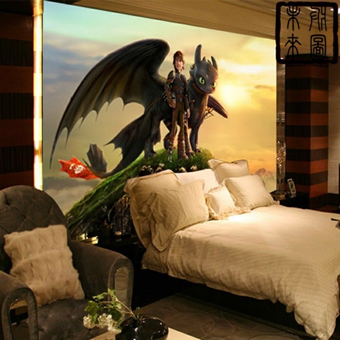 Moderne wandbilder für kinderzimmer mit Drachen an der ganzen wand